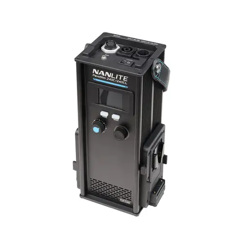 Maximale Helligkeit 50 % mit einem V-Mount-Akku 14,4 – 14,8 V, 80 % mit einem V-Mount-Akku 26 V oder 100 % mit zwei V-Mount-Akkus 14,4 – 14,8 V oder zwei V-Mount-Akkus 26 V oder einem V-Mount-Akku 14,4 – 14,8 V zusammen mit einem V-Mount-Akkus 26 V.