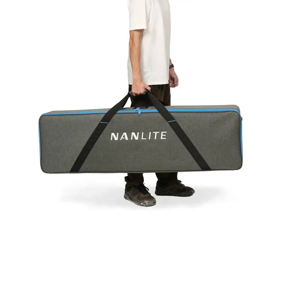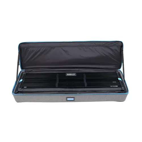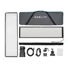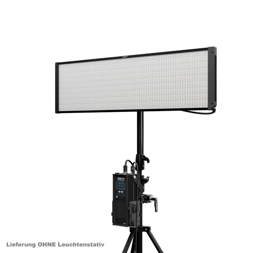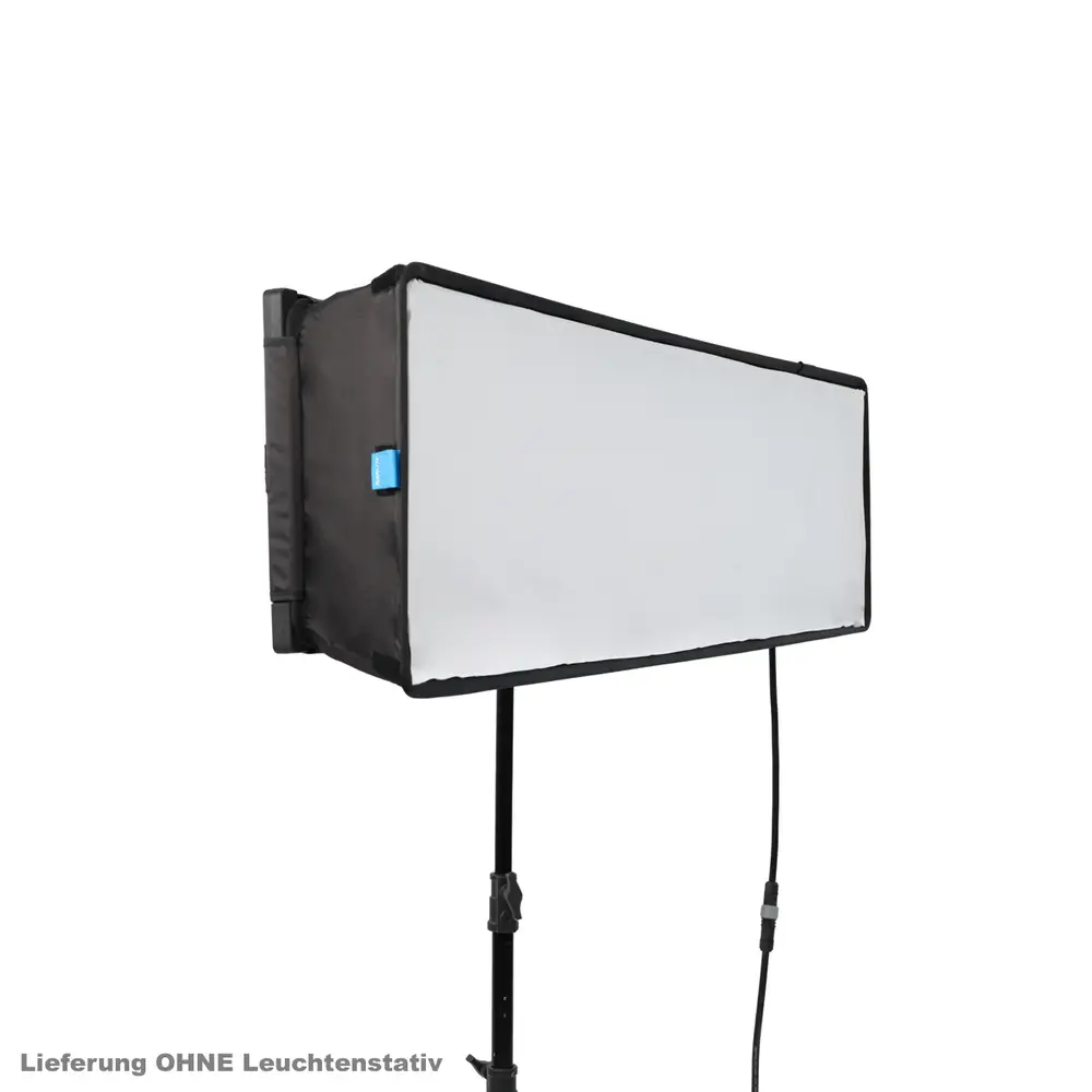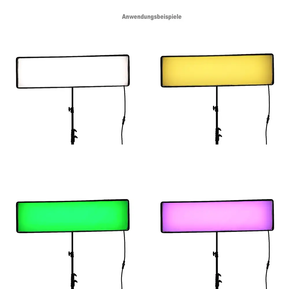 Professionelle, nur 2,35 cm flache Full-Color-Flächenleuchte mit weißem Licht (variable Farbtemperatur 2700 – 7500 Kelvin) und farbigem Licht sowie robustem, aber trotzdem leichtem Metallgehäuse 121 x 31 cm (4' x 1'). Selbst mit montierter Softbox flacher als Leuchtmatten mit Halterahmen.