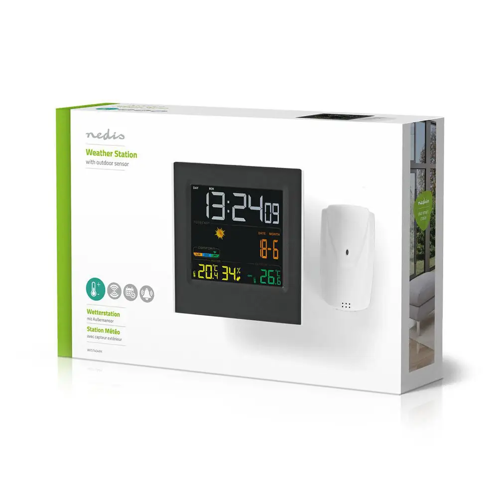 Diese vielseitige drahtlose Wetterstation von Nedis bietet Informationen über die Innen- und Außentemperatur und berichtet über die erwarteten Wetterbedingungen. Darüber hinaus kann sie auch als Wecker verwendet werden.