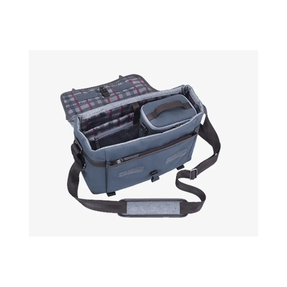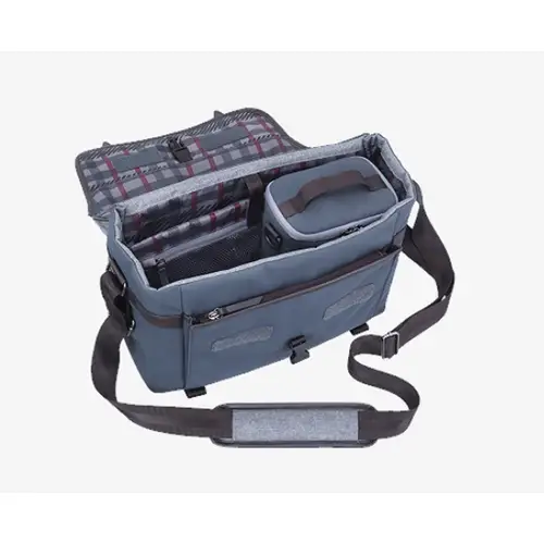 Die Olympus Explorer Tasche ist das Ergebnis einer Zusammenarbeit zwischen dem Premium-Taschenhersteller Manfrotto und Olympus und schützt ein kompaktes Kameragehäuse sowie bis zu drei Objektive. Sie ist außerdem sehr elegant und eignet sich perfekt als täglicher Begleiter. Sie wurde speziell für das leichte OM-D-Kamerasystem konzipiert und ist für alle Fotografinnen und Fotografen geeignet, die immer auf dem Sprung sind. Der schützende und abnehmbare Kamera-/Objektivbeutel und die konfigurierbaren gepolsterten Trennelemente sorgen dafür, dass die Fotoausrüstung in den geschützten Bereichen in der Mitte der Tasche stets an Ort und Stelle bleiben. Die Tasche bietet zudem ein sicheres Fach für einen 14 Zoll großen Laptop. Da der Beutel nur ein Viertel der Tasche einnimmt, bleibt noch genug Platz für weiteres Zubehör, persönliche Gegenstände, Snacks oder eine Flasche Wasser. Auf längeren Reisen können Sie die Explorer-Tasche, dank Reißverschluss auf der Rückseite, einfach an Ihrem Trolley-Koffer anbringen. Sie müssen ein Stativ mitnehmen? Kein Problem, befestigen Sie es einfach unten an der Tasche. Die Olympus Explorer Tasche ist aus erstklassigem wasserabweisendem Stoff mit Echtlederbezug und Tartanfutter hergestellt. Dank der leisen Velcro-Klettverschlüsse lässt sich die Tasche schnell und einfach öffnen und schließen. Für zusätzliche Sicherheit verfügt sie außerdem über eine Schnalle. Der große Griff oben verhindert, dass sich die Tasche beim Hochheben nach vorne neigt. Der verstellbare Schultergurt und das Schulterpolster sorgen für zusätzlichen Komfort.