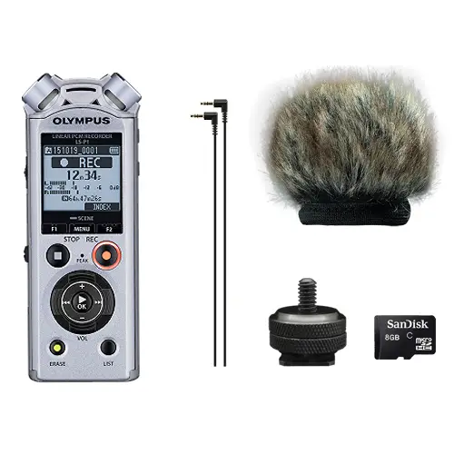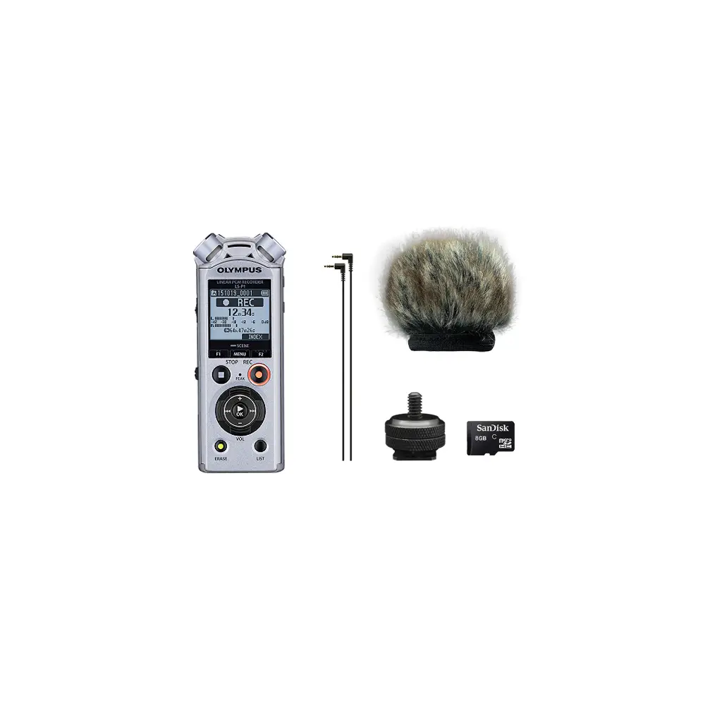 Ein hervorragender Ton vollendet jedes Video. Mit dem LS-P1 Videographer Kit genießen Filmemacher, YouTube-Enthusiasten und Vlogger die Klangqualität und Vielseitigkeit, für die die LS-Serie von Olympus bekannt ist. Bei der Tonaufnahme für Videos kann der LS-Rekorder als separates Handheld-Gerät verwendet werden; oder Sie nutzen ihn in Verbindung mit dem mitgelieferten Blitzschuhadapter und dem 3,5-mm-Kabel als externes Stereomikrofon oben auf der Kamera, um den Synchronisierungsaufwand in der Postproduktion zu verringern. Der mitgelieferte Windschutz vermeidet Windgeräusche beim Filmen im Freien.