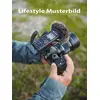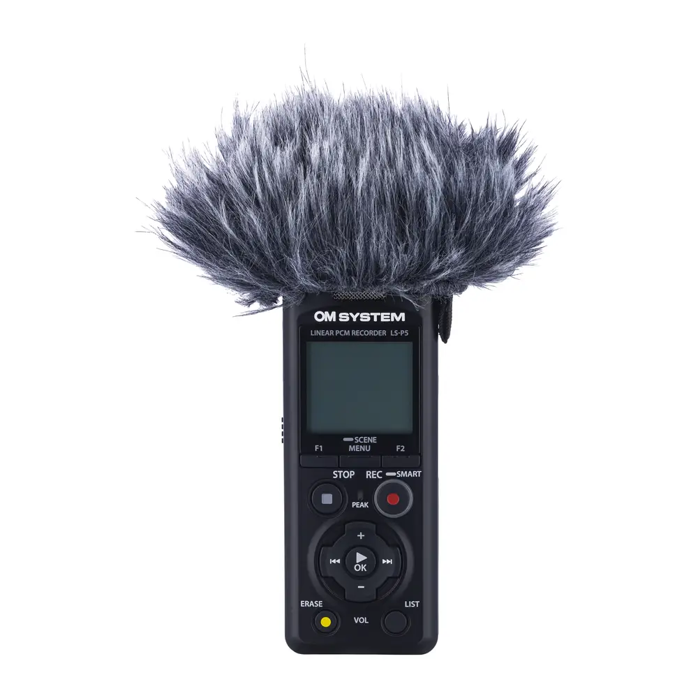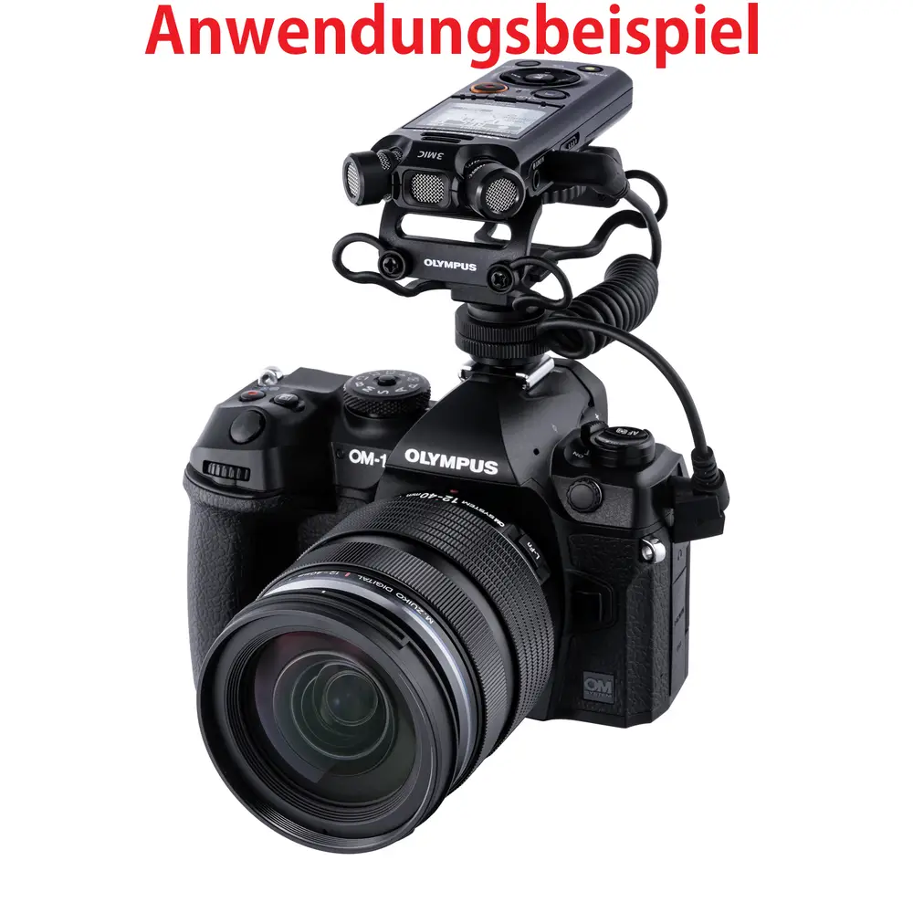 Der LS-P5 kann durch optionales Zubehör mit anderen Produkten kombiniert werden. Mit dem 3,5-mm- Audiokabel KA-335 (optional erhältlich) kann der Recorder beispielsweise an eine spiegellose Kamera von OM SYSTEM, die über eine entsprechende Eingangsbuchse verfügt, angeschlossen und als externes Mikrofon verwendet werden. Um Kamerabetriebsgeräusche und Vibrationsgeräusche zu dämpfen und eine noch bessere Audioqualität zu erzielen, kann der SM2 Shock Mount Adapter (optional erhältlich) zwischen dem Blitzschuh der Kamera und dem Stativanschluss des LS-P5 angebracht werden. Für Aufnahmen im Freien empfiehlt sich der Windschutz, der Windgeräusche minimiert. Der LS-P5 kann nicht nur zum Aufzeichnen des Tons an der Kamera genutzt werden, sondern auch für qualitativ hochwertige Original-Soundaufnahmen in PCM, die dann später bei der Bearbeitung am Computer in das Video integriert werden können. Klappenton und Testton werden ebenfalls unterstützt, was bei der Einbindung von Audiodaten in Videos für eine hochwertige Videoproduktion äußerst hilfreich ist.