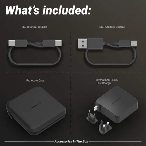 Laden Sie Ihr Handy mit der kabellosen Ladefunktion auf. Stellen Sie Ihr Telefon einfach auf das Omnicharge, um schnell und zuverlässig drahtlos aufgeladen zu werden.Ausgestattet mit QC 3.0 bietet der USB-A-Anschluss eine schnelle Aufladung Ihrer Telefone, Tablets und mehr.Lieferumfang• Omni 20+• 1x USB-C an USB-C Ladekabel• 1x USB-A an USB-C Ladekabel• 1x Protective Case• 1x USB-C Ladegerät