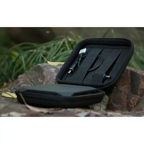 Gut ausgepolstert für Ihre Powerbank. Elastische Innentasche für Kabel und Adapter.