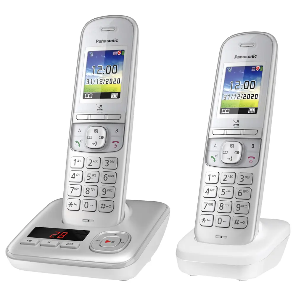 Das Telefon klingelt, beim Abnehmen ist niemand in der Leitung und kurze Zeit später läutet es schon wieder. Von Call Centern eingesetzte Wahlautomaten können wirklich Nerven kosten. Mit dem Panasonic KX-TGH722 bleiben Telefonhaushalte nun davon verschont. Auf Wunsch klingelt das moderne Schnurlose nämlich nur dann, wenn der Anrufer im Telefonbuch des Familientelefons steht. Ist der Anrufer nicht eingetragen, wird er um Eingabe einer Zahlenkombination gebeten. Erst danach beginnt das Telefon zu läuten. Wahlautomaten verstehen diese Aufforderung nicht. Das Schnurlose bleibt daher still und der Anruf wird nicht als versäumt angezeigt. Darüber hinaus bietet das KX-TGH722 eintausend Speicherplätze zum Sperren von Anrufern. Mit jeder Rufnummer, die über die extra Sperrtaste auf die Liste rückt, wird das Leben ein Stückchen entspannter.Beim Telefonieren punktet das neue Familientelefon mit der gewohnt hohen Panasonic Sprachqualität und einer erstklassigen Voll-Duplex-Freisprechfunktion. Hier können mehrere Personen mitreden und die Hände bleiben frei, um nebenbei etwas zu erledigen. Direkt im Gespräch ist die Ausgabelautstärke einfach über die Lauter-/Leiser-Tasten an der Seite des Mobilteils anzupassen. So telefoniert jedes Familienmitglied in seiner persönlichen Komfort-Lautstärke - von leise bis extralaut*.* Das KX-TGH722 klingt bis zu 5 dB lauter als herkömmliche Standardtelefone von Panasonic.Äußerst praktisch ist auch das integrierte Telefonbuch: Hier steht alles zusammen, was zusammen gehört. Pro Namen ist Platz für bis zu drei Rufnummern – leicht auseinander zu halten dank praktischer Farb-Icons für Zuhause, Handy und Job. Zwei wichtige Kontakte sind zudem über Zielwahltasten direkt zu erreichen. Beim manuellen Wählen sorgt das weiß beleuchtete, angenehm griffige Tastenfeld für viel Komfort.Sollte das Mobilteil versehentlich einmal aus der Hand rutschen oder von der Tischkante fallen - kein Problem. Das stoßfeste* KX-TGH722 übersteht auch einen Sturz aus 1,20 Meter Höhe.* Erfolgreich getestet nach Militärstandard MIL-STD-810G 516.6.Mit 14 Stunden Sprechzeit und 250 Stunden Standby-Zeit bringt das Mobilteil die nötige Ausdauer für Familien mit. Nach einem Tag mit viel Gesprächsbedarf hält es nachts noch als Babyphone die Ohren offen. Bei Unruhe im Kinderzimmer ruft es intern auf einem zweiten Mobilteil oder z.B. auf dem nutzereigenen Handy an. Das Besondere: Dank der Vollduplex-Freisprechfunktion hören Eltern bei Aktivierung nicht nur das Kind, sondern das Kind nimmt ohne Unterbrechungen auch die vertrauten Stimmen der Eltern wahr.Ansonsten trägt der Nachtmodus zu ungestörten Ruhephasen bei. Dabei wird das Klingeln für eine gewünschte Zeitspanne unterdrückt und der Anruf still an den integrierten Anrufbeantworter übergeben. Dieser bietet 40 Minuten Aufnahmezeit und ein schnelles Vor- und Zurückspulen innerhalb einer Nachricht. Wer immer auf dem Laufenden bleiben möchte, lässt sich neue Nachrichten beispielsweise auf seinen Büroanschluss weiterleiten. Ein Code schützt die persönlichen Mitteilungen vor unautorisiertem Zugriff.