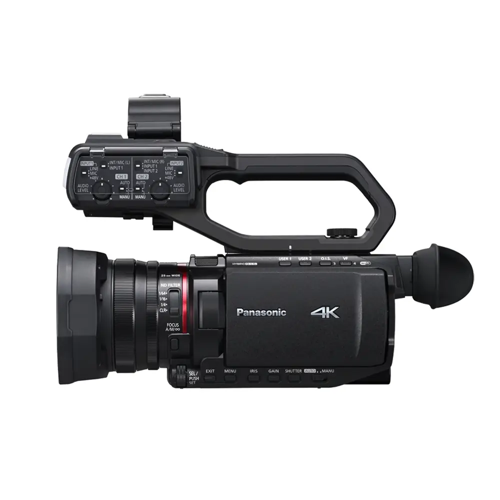 Der AG-CX20EJ verfügt über ein Weitwinkel-Objektiv mit 25 mm Brennweite sowie einen 24fachen optischen Zoom, zudem verfügt die AG-CX20 über ein 4-Drive-Objektivsystem, das jede Linsengruppe unabhängig voneinander bedient und zwei manuelle Fokusringe, einer für den Fokus der andere für den Zoom. Dank des VW-HU1 Handgriffs und des integrierten 5-Achsen-Hybrid-O.I.S. Bildstabilisierung können problemlos, verwacklungsfreie Aufnahmen auch aus sehr hohen oder niedrigen Winkeln aufgezeichnet werden. Der kompakte Camcorder (etwas schwerer als der AG-CX18EJ) bietet einen Hochgeschwindigkeits-AF mit hoher Genauigkeit, einschließlich Gesichtserkennung AF/AE. Darüber hinaus kann durch einfaches Berühren des LCD-Bildschirms die Motivverfolgung mit Farberkennung aktiviert werden, was eine präzise Verfolgung ermöglicht. Der AG-CX20 unterstützt eine Vielzahl an Formaten und Bitraten, sie ermöglicht eine interne 4:2:2 10-Bit-Aufzeichnung mit maximal 29,98 p in UHD und maximal 59,94 p in Full HD. Bei Einstellung auf 10-Bit-Aufzeichnung liefert der Camcorder eine 4K60p 4:2:2 10-Bit-HDMI-Ausgabe und ermöglicht so Aufnahmen in hoher Bildqualität mit einem externen Rekorder.