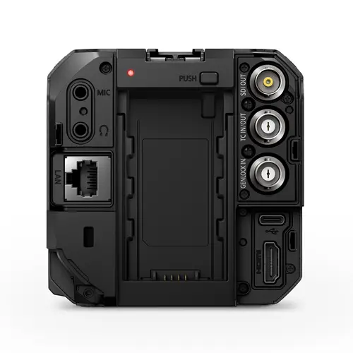 • Anschlussfreudig – LAN (PoE+), HDMI (A), SDI (3G), GenLock, Timecode, 2x SD-Kartenfach, USB C, LANC, Mikro, Kopfhörer, WLAN, Bluetooth, XLR-Dock (optional)