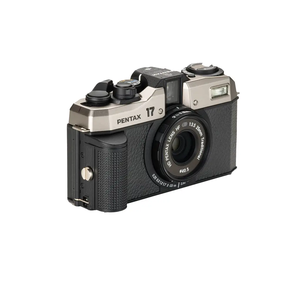 Die PENTAX 17 verfügt über ein 25-mm-F3,5-Festbrennweiten Objektiv (entspricht einem 37-mm-Objektiv im 35-mm-Format).