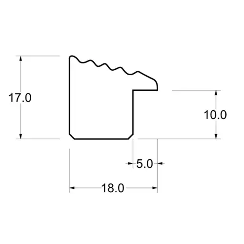 Leiste: Dachkantprofil mit Rillen aus Kiefernholz, Breite ca. 19 mm und Höhe ca. 18 mm
