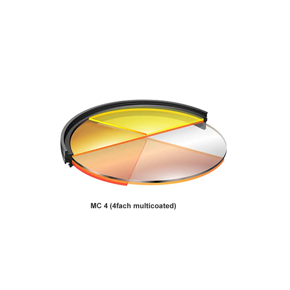 • MC 4-Vergütung: jeweils zwei Schichten auf jeder Seite, für bessere Lichtdurchlässigkeit