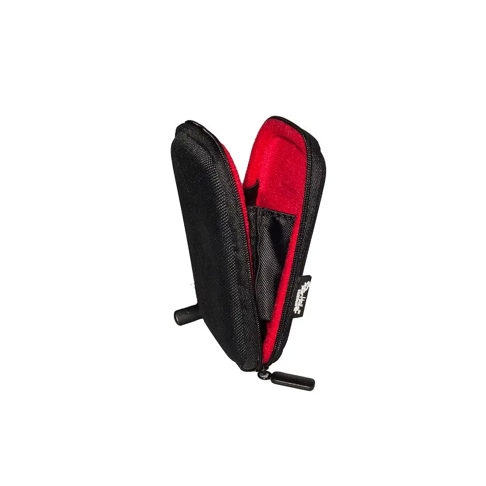 Die widerstandsfähige Außenschale ist mit unempfindlichem Nylon bezogen. Rundum mit Reißverschluß versehen. Mit Gürtelschlaufe, abnehmbarem Trageriemen und kleinem Innenfach.