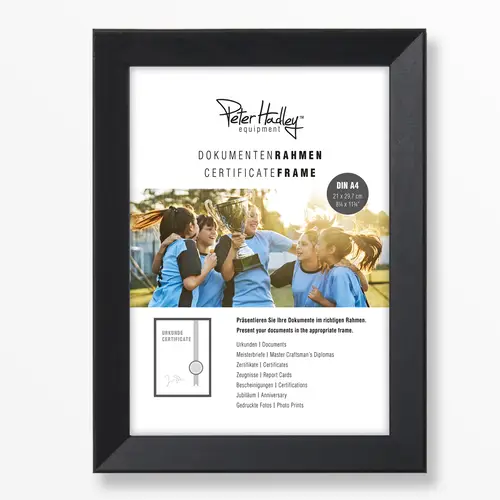 Rückwand: stabile MDF-Rückwand mit Tischaufsteller für Hoch- und Querformat bis zum Format 21x29,7 cm, der Rahmen verfügt über einen Wandaufhänger für Hoch- und Querformat