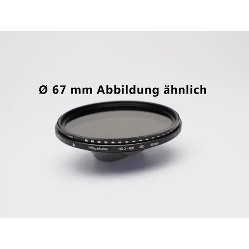 Belichtungsverlängerung zwischen +1 und +8 (ND2-400), Drehfassung für individuelle Einstellung, 4-fache Vergütung (2 Schichten pro Seite), Fassungsstärke: 7mm, Glasart: hochwertiges Objektivglas