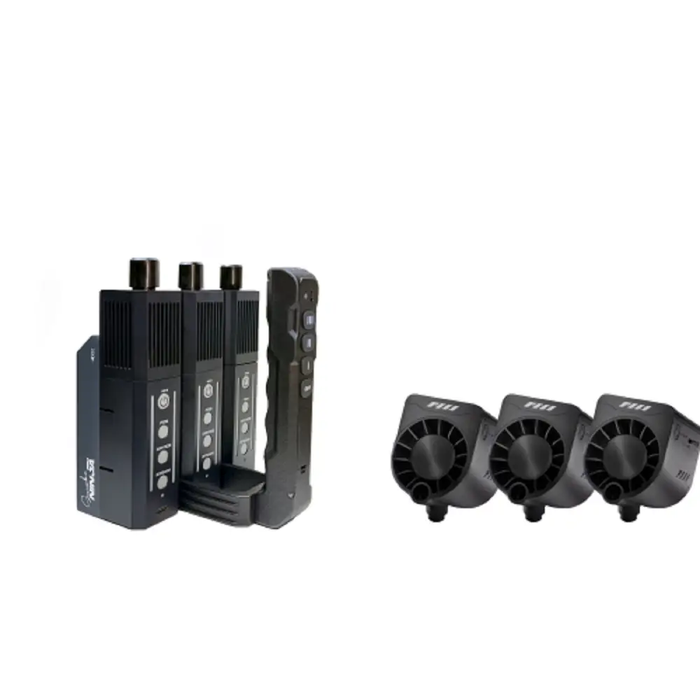 Der SmokeNINJA PRO ist die ideale Nebelmaschine für Content Creator, Fotografen und Einsteiger in die Videoproduktion. Diese kompakte, kabellose und batteriebetriebene Mini-Rauchmaschine wurde speziell entwickelt, um kreative Projekte mit magischen Effekten wie Nebel, Dampf und Trockeneis zu bereichern. Dank der benutzerfreundlichen Bedienung und des attraktiven Preis-Leistungs-Verhältnisses ist der Smoke Ninja das perfekte Einstiegsgerät für Kreative, die beeindruckende visuelle Effekte in ihre Arbeit integrieren möchten. Das SmokeNINJA PRO Trident Kit enthält drei SmokeNINJA PRO-Einheiten kombiniert für eine Leistung, die einer 1500-Watt-Nebelmaschine entspricht. Ideal für große Studios und Außeneinsätze.