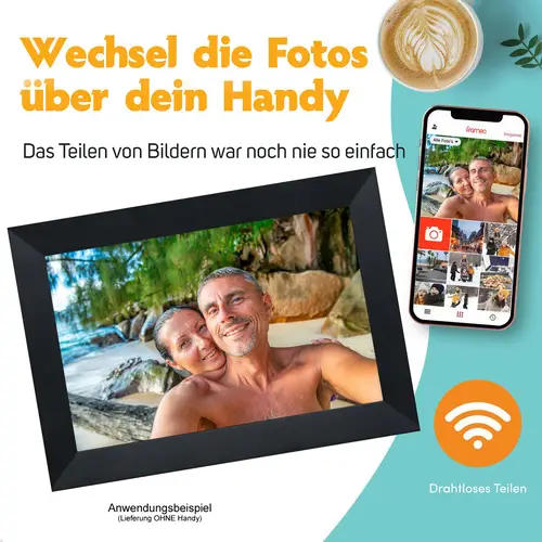 Mit der kostenlosen Frameo App (Android und iOS) können Fotos auch an einen anderen Ort versendet werden.