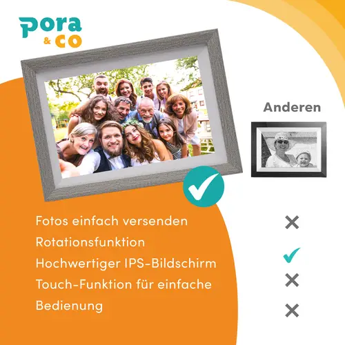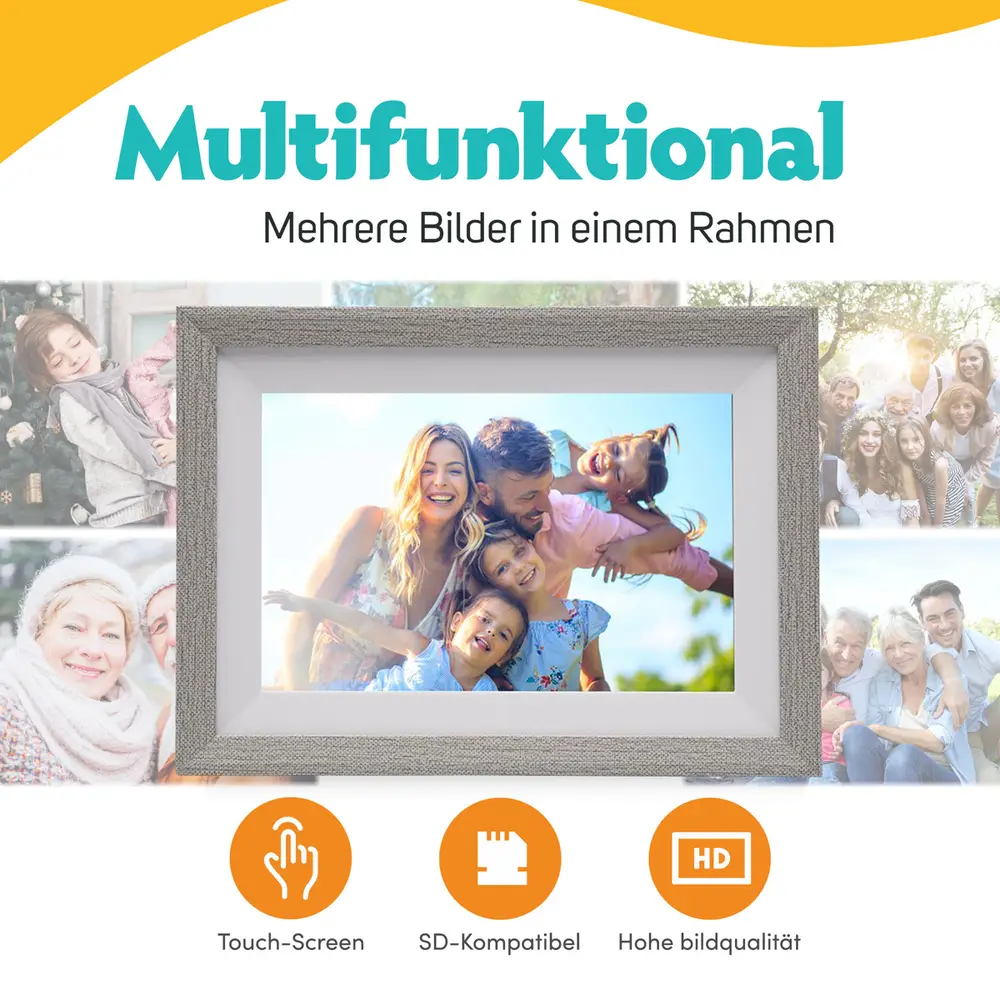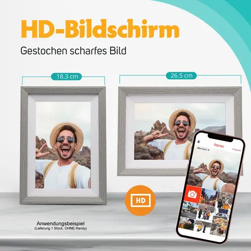 Dieser Fotorahmen hat ein hochwertiges IPS-Display in Höhe von 280 Zoll (20,2 cm) mit 1280x800 Pixeln, eine Touch-Funktion für eine einfache Bedienung sowie einen extrem guten Betrachtungswinkel (178 Grad).