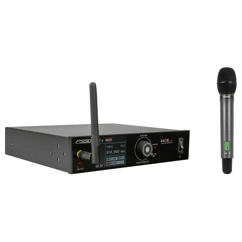 PSSO WISE ONE 1-Kanal True Diversity Empfänger 518-548MHz, anmeldefreier True-Diversity-Funkempfänger mit 2,4GHz iSync-Fernsteuerung• Professioneller Multifrequenz-Funkempfänger mit True-Diversity-Technik für den Bühneneinsatz• Hochwertige Bauteile und durchdachte Features sorgen für beste Performance und hohe Zuverlässigkeit• Geeignet für große Mehrkanalanlagen (Parallelbetrieb von bis zu 26 Systemen möglich)• 100 Preset-Kanäle in 10 Kanalgruppen• 2,4 GHz iSync - komfortables Synchronisieren und Überwachen des Senders in Echtzeit• Automatisches Frequenzsetup• Pilotton-Technologie (PLL) und Noise-Squelch für störungsfreien Betrieb• Hochauflösendes LCD-Farbdisplay• Multifunktionales Jogdial zur Menüführung• Lock-Funktion verhindert versehentliches Ändern der Einstellungen• XLR- und 6,3-mm-Klinkenausgang• Mic/Line-Umschaltung• Groundlift-Schalter• 2 abnehmbare Antennen (BNC) ermöglichen die Kombination mit einem externen Antennensplitter• USB-Port für Softwareupdates• 2 Empfänger über ein Netzteil betreibbar• Auslieferung in praktischer Transporttasche mit Klinkenkabel und Netzteil• Passende Handsender separat erhältlich• 483-mm-Rackeinbau mit beiliegenden Montagewinkeln möglich• Anmelde- und gebührenfrei in großen Teilen der EU (bitte länderspezifisch prüfen)• Erhältliche Frequenzbereiche: 518-548 MHz, 638-668 MHz, 823-832 MHz und 863-865 MHz• Hat eine Reichweite von bis zu 60m bei Sichtweite• Tischpult Gehäuse 1 HE; (19') 48,3 cm Rackeinbau (mitgeliefert)