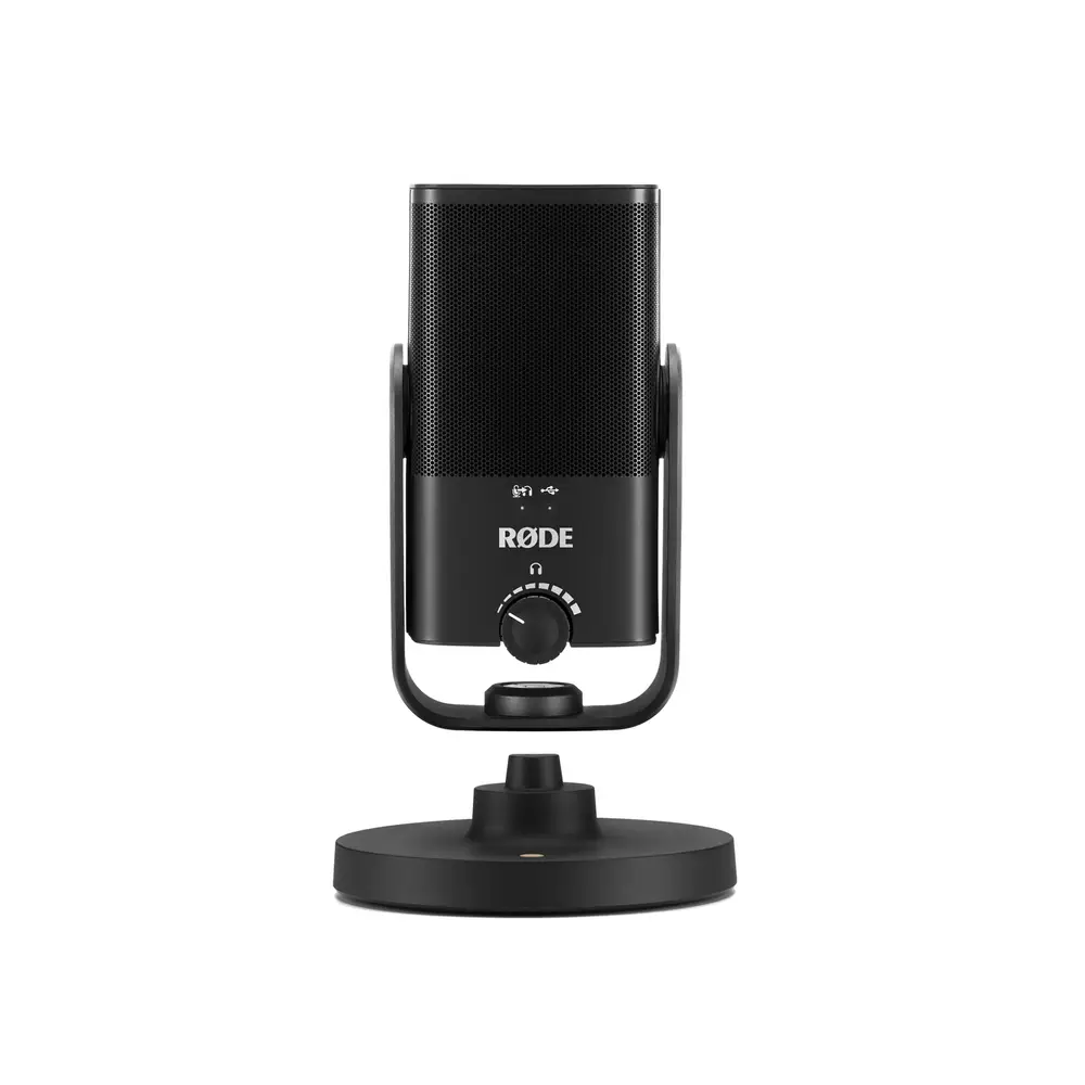 Produktmerkmale• Vorne ist der Lautstärkeregler für den Kopfhörerausgang, der RØDE-Schriftzug verweist auf die korrekte Einsprechrichtung • Auf der Rückseite des NT-USB MINI befinden sich die 3,5-mm-Kopfhörerbuchse und der USB-C-Anschluss • Die Gabelhalterung erlaubt ein bequemes Positionieren des Mikrofons und kann zur Tischnutzung einfach aufgesteckt werden: der robuste Stahlsockel ist nämlich magnetisch • Das NT-USB MINI eignet sich ideal zum Podcasten, Streamen, für Gamer, zur Nachvertonung und natürlich zur Aufnahme von Gesang und Naturinstrumenten Technische Daten• hochwertige Kondensatorkapsel • Richtcharakteristik: Niere • integrierter Popschutz • Grenzschalldruckpegel: 121 dBA (@ 1% THD) • Frequenzgang: 20 Hz – 20 kHz • eingebautes 24 Bit/48 kHz Audio-Interface mit USB-C-Anschluss • Class Compliant – wird sofort vom Rechner erkannt • Kopfhörerausgang: 3,5 mm Stereoklinke mit Lautstärkeregler • schaltbares Direkt-Monitoring für latenzfreies Mikrofonsignal • Systemvoraussetzung: Windows 10/Mac OS 10.12 • Stromversorgung: über USB • schwenkbares Stahlgehäuse mit matt-schwarzer Beschichtung • dank Gabelhalterung perfekt positionierbar • bequem abnehmbarer magnetischer Tischsockel • Maße (BTH): 54,5 x 43,9 x 108,1 mm • Maße Tischsockel: 89,3 mm (Durchmesser), 32,4 mm (Höhe) • Gewicht: 585 g • inkl. USB-C auf USB-A Kabel