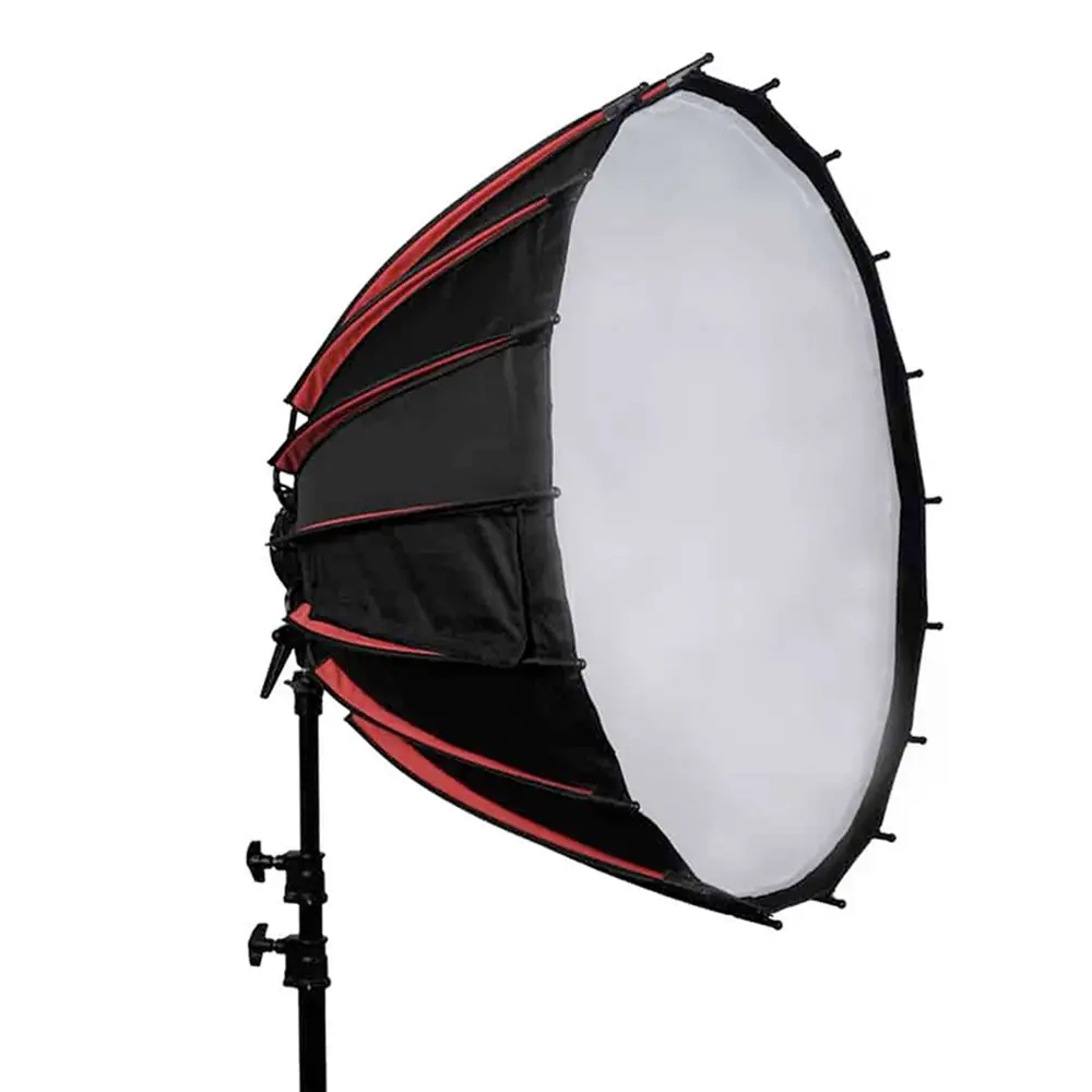 Die R90 Softbox ist aus einem sehr haltbaren, hochreflektierenden Material gefertigt und eignet sich ideal als Hauptlicht für Porträts, Hochzeiten, Werbung, Mode und Videoanwendungen. Dieser hochmoderne 16-seitige Lichtformer eignet sich sowohl für den Einsatz in Locations als auch im Studio und bietet eine atemberaubende, weiche Lichtleistung mit einer scharfen Kante, die dem Motiv Dimensionen und fokussierte Details verleiht und gleichzeitig natürlich wirkende Catchlights erzeugt.