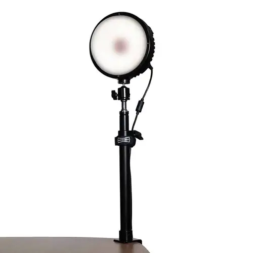 Einfache Befestigung an Ihrem Schreibtisch mit einem verstellbaren, robusten Lichtstativ und einer Klemme, während der mitgelieferte Kugelkopf Ihnen schmeichelndes Licht aus jedem Winkel ermöglicht.