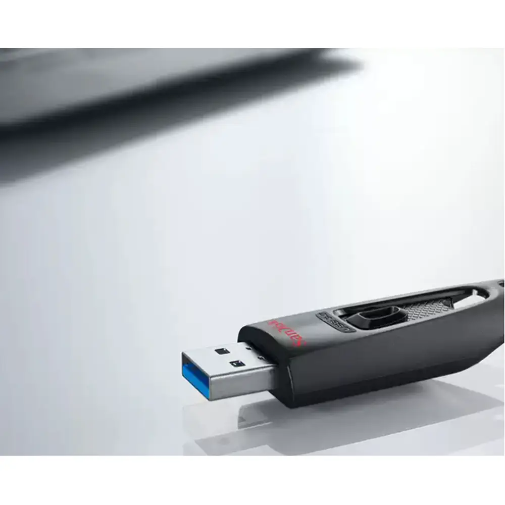 Das SanDisk Ultra USB 3.0 Flash-Laufwerk bietet Stil kombiniert mit hohen praktischen Nutzen in einem eleganten, schwarzen Design. Das kompakte und mobil einsetzbare Laufwerk ist in einer Tasche oder Handtasche der ideale Reisebegleiter.