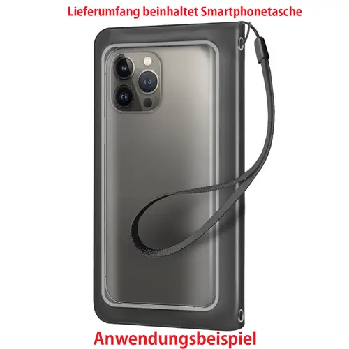 Wasserfeste Touch-Tasche, die das Smartphone vor Wasserspritzern schützt und die Nutzung des Displays ermöglicht