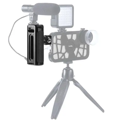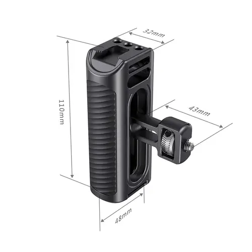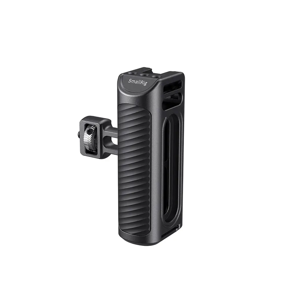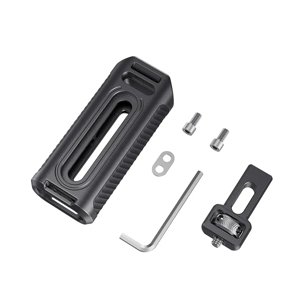Er verfügt über drei Standardgewindebohrungen 1/4"-20 und eine Cold Shoe Montage oben zur Zubehörbefestigung wie ein Mikrofon oder eine LED-Leuchte. Der Griff ist mit dem SmallRig Handriemen 2456 kompatibel, um eine sicherere und stabilere Handaufnahme zu ermöglichen. Das Leichtgewicht mit nur 224 g verfügt über ein Aluminiumgehäuse mit rutschfesten Silikonhüllen, um einen bequemen Griff für lange Zeit zu gewährleisten.