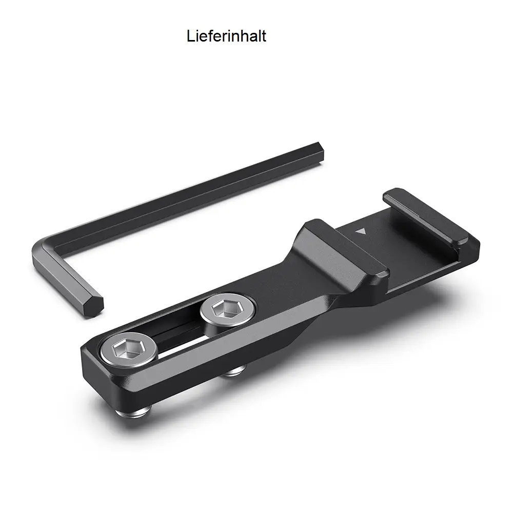 Die Cold Shoe Montage hält den Zugang zu den Kameratasten nach der Montage eines Mikrofons oder einer Leuchte aufrecht. Er wird mit zwei unverlierbaren 1/4"-20-Schrauben an Cage und Platten befestigt. Der Cold Shoe ist an einem Ende mit einer Anschlagkante versehen, damit das Zubehör auf der anderen Seite nicht herausrutscht.Hauptmerkmale• Cold ShoeZubehör an der Seite der Kamera montieren• Verlagerung der Schuhbefestigung zur Seite• Befestigung an Cages & Platten über unverlierbare Schrauben 1/4"-20• Anti-Rutsch-Design in einem EndeKompatibilitätAlle Cages oder Vorrichtungen mit zwei horizontalen 1/4"-20-Gewinden mit einem Achsabstand von 9-18 mm.Lieferumfang1x Cold Shoe 28791x Sechskantschlüssel