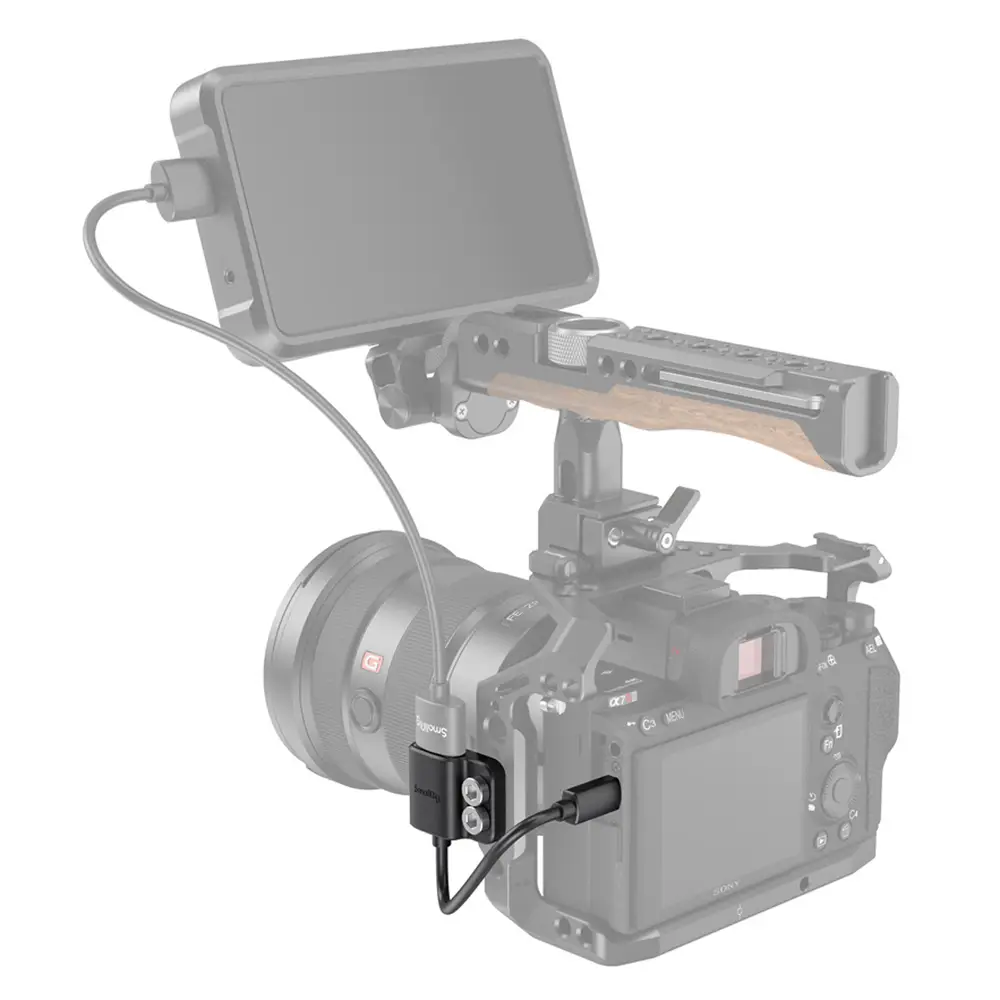 SmallRig Ultra Slim 4K HDMI-Adapterkabel (D bis A) 3021 ist ein hochwertiges HDMI-Adapterkabel (Micro-HDMI-Stecker auf Full-HDMI-Buchse) für Ihre Kameraeinrichtung. Es handelt sich um eine HDMI 2.0-Version, die eine Auflösung von bis zu 4 KB bei 60 Hz unterstützt und abwärtskompatibel ist.Es verfügt über zwei 1/4"-20-Schrauben, mit denen das weibliche Teil an der Seite des Kameracages oder der L-Halterung fest befestigt wird, um den HDMI-Anschluss der Kamera zu schützen und eine stabilere Verbindung zu gewährleisten. Das ultraschlanke Design mit einem Außendurchmesser von 3,6 mm macht es dünner und weicher als ein normales HDMI-Kabel.Es ist ein perfektes Adapterkabel, mit dem der HDMI-Anschluss der Kamera nach Bedarf in die gewünschte Richtung geändert werden kann.Hauptmerkmale:• Hochwertiges HDMI-Adapterkabel• HDMI 2.0 und unterstützt eine Auflösung von bis zu 4K @ 60HZ.• Es verfügt über zwei 1/4"-20-Schrauben, mit denen das weibliche Teil an der Seite des Kameracages oder der L-Halterung fest befestigt wird.• Ein perfektes Adapterkabel, mit dem der HDMI-Anschluss der Kamera nach Bedarf in die gewünschte Richtung geändert werden kann.Designer: Abby HuangHinweis:Stellen Sie sicher, dass der HDMI-Anschluss Ihrer Kamera vom Typ Micro-HDMI ist.Kompatibilität:Kameras mit Micro HDMI ports, like Sony A7R IV, A7RIII, A7III, A7II, A7RII, Fujifilm X-T2, X-T3, usw.Kameras cages or L brackets mit nicht weniger als zwei 1 / 4-20 ”Gewindelöchern (9 mm Abstand von Mitte zu Mitte) auf der linken Seite, wie 2416, 2238, 2228, 2229 usw.Lieferumfang:1 x HDMI-Adapterkabel2 x 1/4"-20 Schraube1 x SechskantschlüsselProduktabmessungen: 141.1 x 33.2 x 11.8mmVerpackungsmaße: 106 x 98 x 33mmNettogewicht: 31g±5gPaket-Gewicht: 60g±5gMaterial: PVC