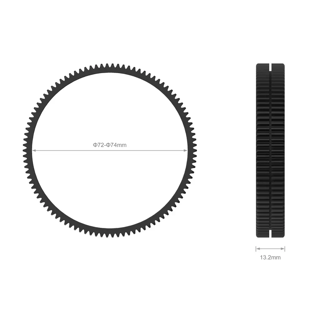 Verfügt über Standard 0,8 MOD und besteht aus elastischem Material, passt sich nahtlos und gleichmäßig der Linse an. Der Ring ist mit Ø72-74mm Objektiven kompatibel und kann mit Mini-Follow-Focus 3010 und anderen Follow-Focus-Systemen verwendet werden. Es macht weniger Rauschen und keine Verzerrungen und ermöglicht eine reibungslose 360º Drehung und eine präzise Fokuseinstellung.