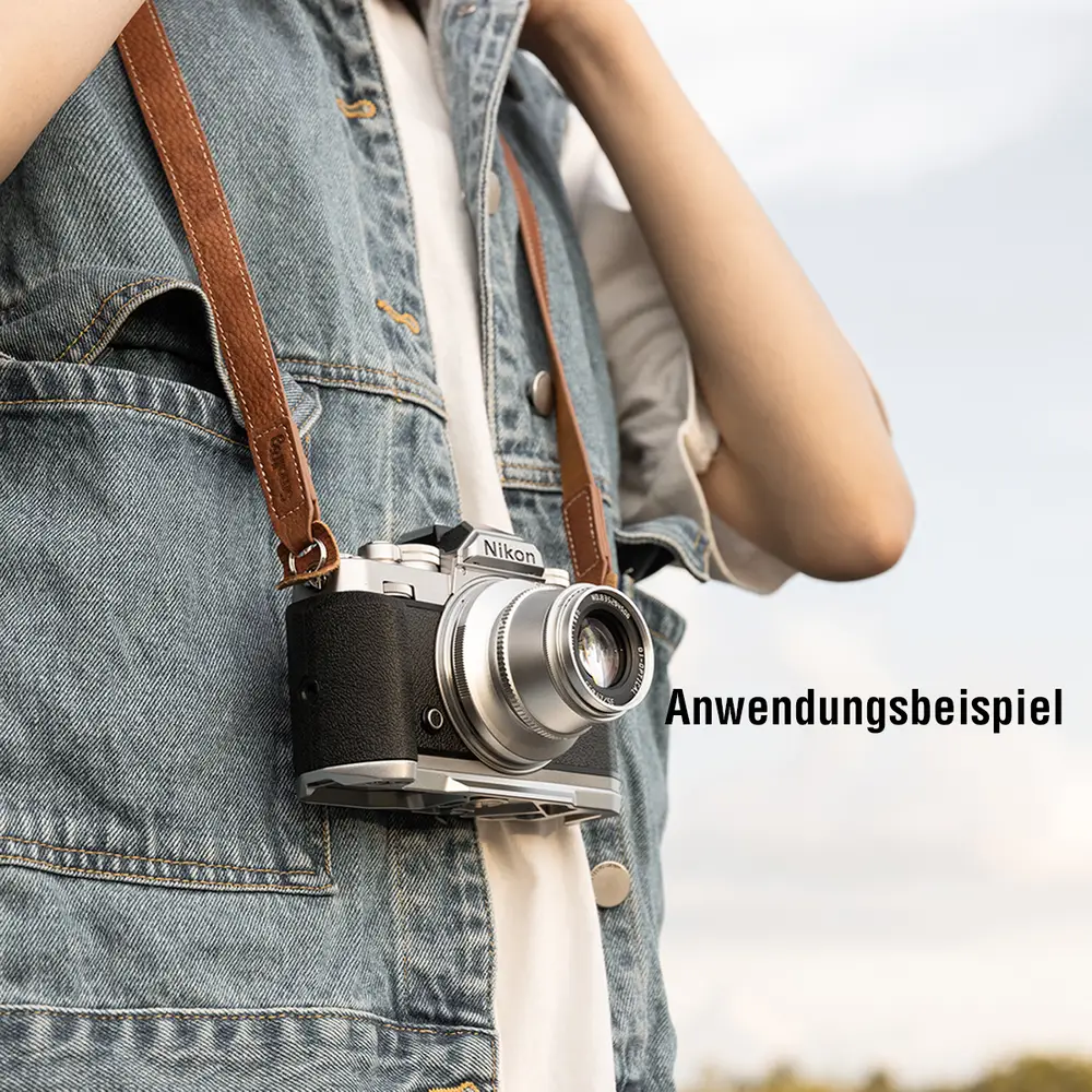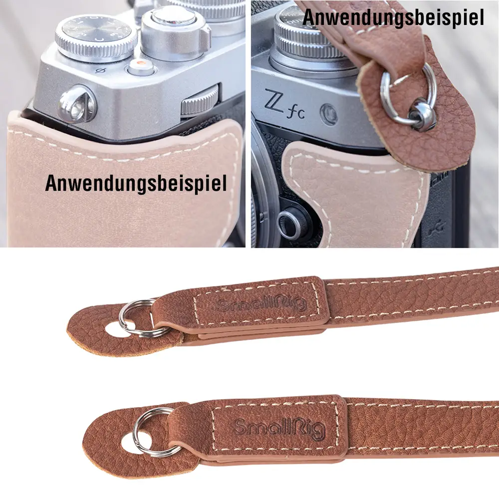 SmallRig Leder-Kameragurt 3485 wurde entwickelt, um das Tragen Ihrer Kamera über der Schulter oder um den Hals zu erleichtern und gleichzeitig die Schulter zu entlasten. Der Umhängeriemen hat eine feste Länge von 43 Zoll und ist mit einem integrierten Ringbefestigungssystem ausgestattet, das mit Schutzklappen versehen ist, um zu verhindern, dass die Ringe Ihr Kameragehäuse zerkratzen.