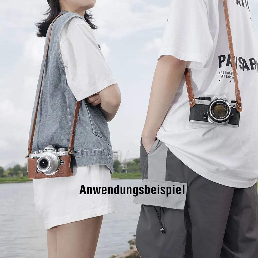Produktmerkmale• Kann spiegellose & DSLR-Kameras und Objektiv halten.• Aus echtem Leder mit retro braunem Design, klassisch und modisch.• Ring-Typ Befestigungssystem mit Protektor.• Weiche Stoffkonstruktion Rückseite zu verhindern, dass Schweiß von Flecken Kleidung.• Verschiebbare Schulterpolster für Komfort.