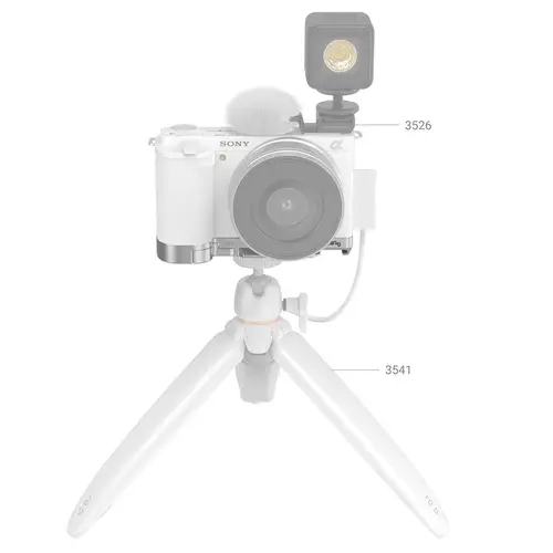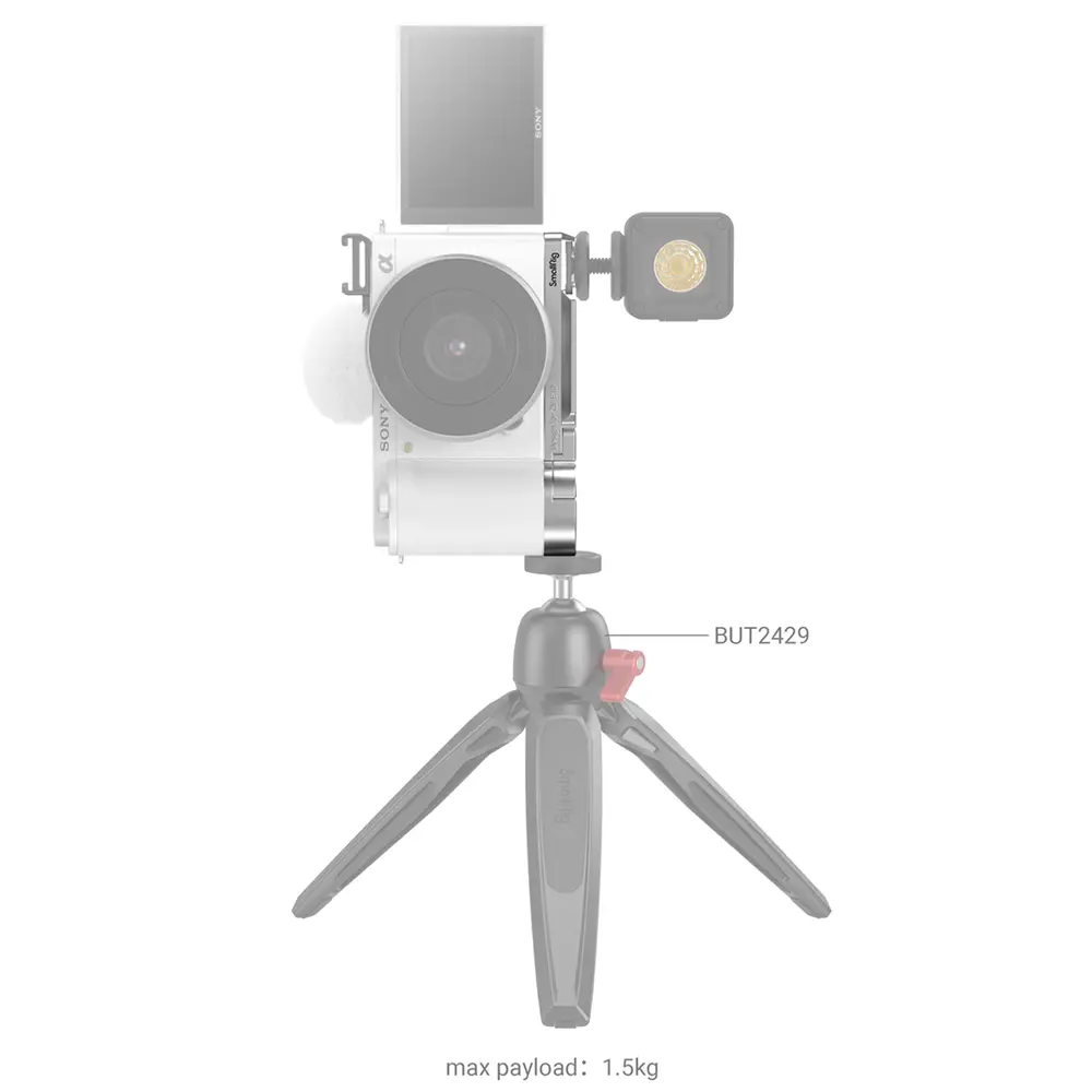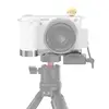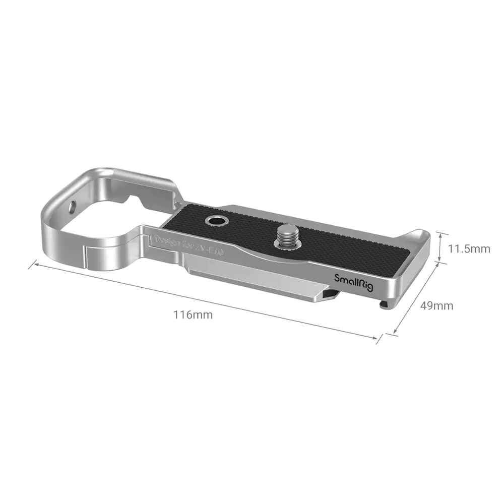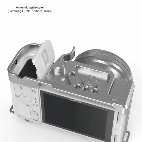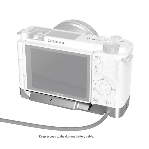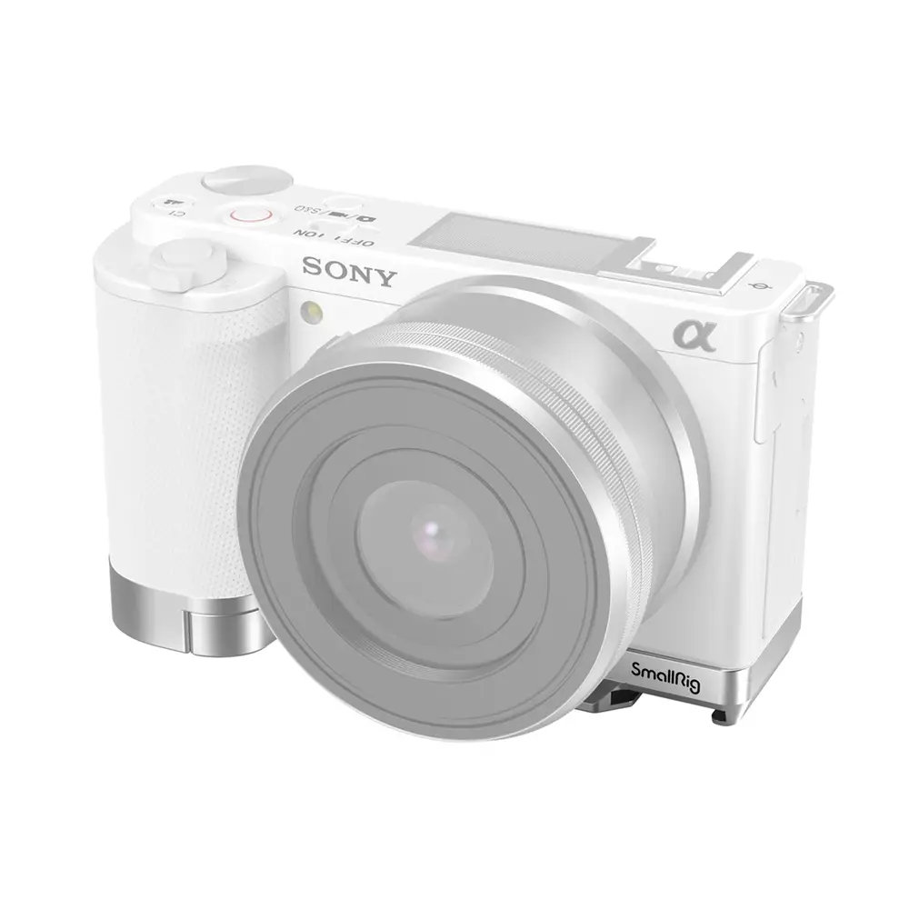 SmallRig Verlängerungsgriff (silber) für Sony ZV-E10 3524 wurde entwickelt, um die Griffigkeit zu erhöhen und Befestigungspunkte für Zubehör zu bieten. Die Grundplatte wird mit einer 1/4"-20 D-Ring-Schraube ohne Werkzeug an der Kamera befestigt. Die Unterseite verfügt über eine integrierte Arca-Schnellwechselplatte, die eine schnelle Montage auf einem Stativ ermöglicht.