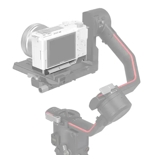 Die Unterseite verfügt über mehrere 1/4"-20 Gewindelöcher, die mit der DJI RS 2 / RSC 2 / RS 3 / RS 3 Pro Schnellwechselplatte (oben) kompatibel sind. Die rechte Seite ist mit einem 1/4"-20 Gewinde ausgestattet, um ein Stativ für vertikale Aufnahmen zu montieren, wobei der Zugang zum Flip Screen und den Kabelanschlüssen erhalten bleibt.