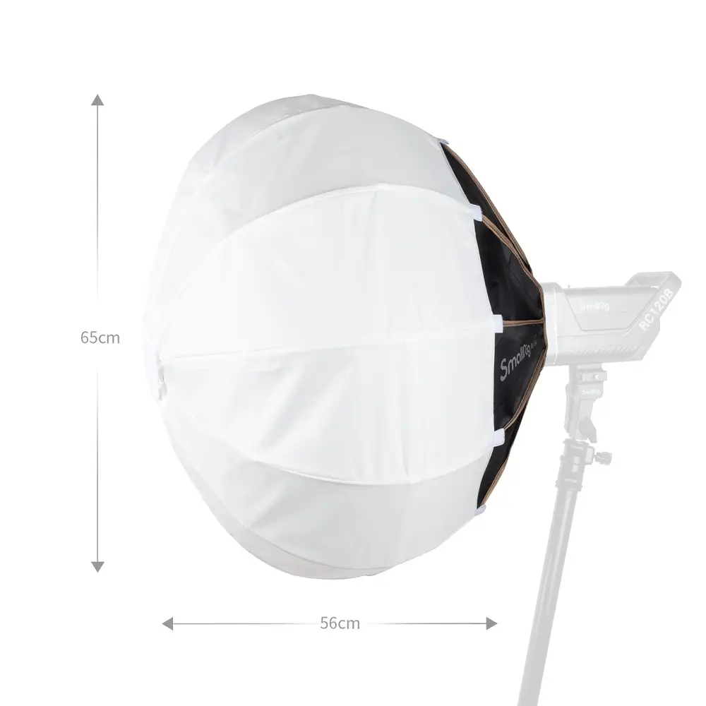 Die SmallRig RA-L65 Lantern Softbox ist eine Laterne Softbox. Sie dient zum Ausleuchten großer Flächen und hat Scheunentore aus Stoff um das Licht zu steuern. Dank des Schnellspanner und der Schnellspanner Struktur kann die Softbox durch einfaches Drücken leicht installiert werden. Sie ist kompatibel mit den SmallRig RC120D und RC120B Leuchten.