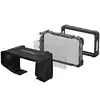 Das Kit umfasst den Käfig, eine Sonnenblende sowie eine Silikon-Schutzhülle und die Displayschutzfolie. Der Käfig ist mit einem Slider ausgestattet, der für den Magic Arm (SmallRig 2071B) und die Monitorhalterung (SmallRig BSE2385) genutzt werden kann. Zudem gibt es 1/4"-20-Gewindebohrungen, welche die Befestigung der Monitorhalterung (SmallRig 2903B) und Schwenkarme (SmallRig 2070D) ermöglichen. Die ARRI 3/8"-16-Aufnahmelöcher unterstützen die Anbringung der Schwenkarme (SmallRIg 2115C). Das Set beinhaltet auch eine professionelle HDMI-Kabelklemme, die dafür sorgt, dass die Schnittstelle geschützt wird und Verbindungsabbrüche vermieden werden. Neben dem Käfig enthält das Kit auch eine Sonnenblende, die starkes Sonnenlicht effektiv abhält. Eine Silikonhülle, die mit Messing eingebettet ist, unterstützt die Wärmeableitung und bietet zusätzlichen Schutz. Zudem gibt es eine Displayschutzfolie, die sich leicht anbringen lässt und den Bildschirm vor Fingerabdrücken, Spritzwasser, Staub, Kratzern und Stößen schützt.
