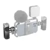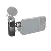 An der Oberseite des Handgriffs befindet sich ein Cold-Shoe-Anschluss, an dem ein Mikrofon oder eine LED-Leuchte für professionellere Aufnahmen angebracht werden kann. Der Griff kann für die linke oder rechte Hand verwendet werden, indem der Griffanschluss angepasst wird. Außerdem kann er je nach Schwerpunkt und Position des Zubehörs nach oben und unten verschoben werden, um eine bessere Griffigkeit zu erreichen.