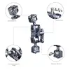 Hauptmerkmale:• Dehnbare Stifte an beiden Zubehörhalterungen, die ein Verdrehen verhindern und für Sicherheit sorgen.• Belastbarkeit: 5,5 kg• Ein magnetischer Schraubenschlüssel an der Unterseite des Daumenhebels zum Festziehen der Daumenräder.• wiegt nur 88 g, kompakt und leicht