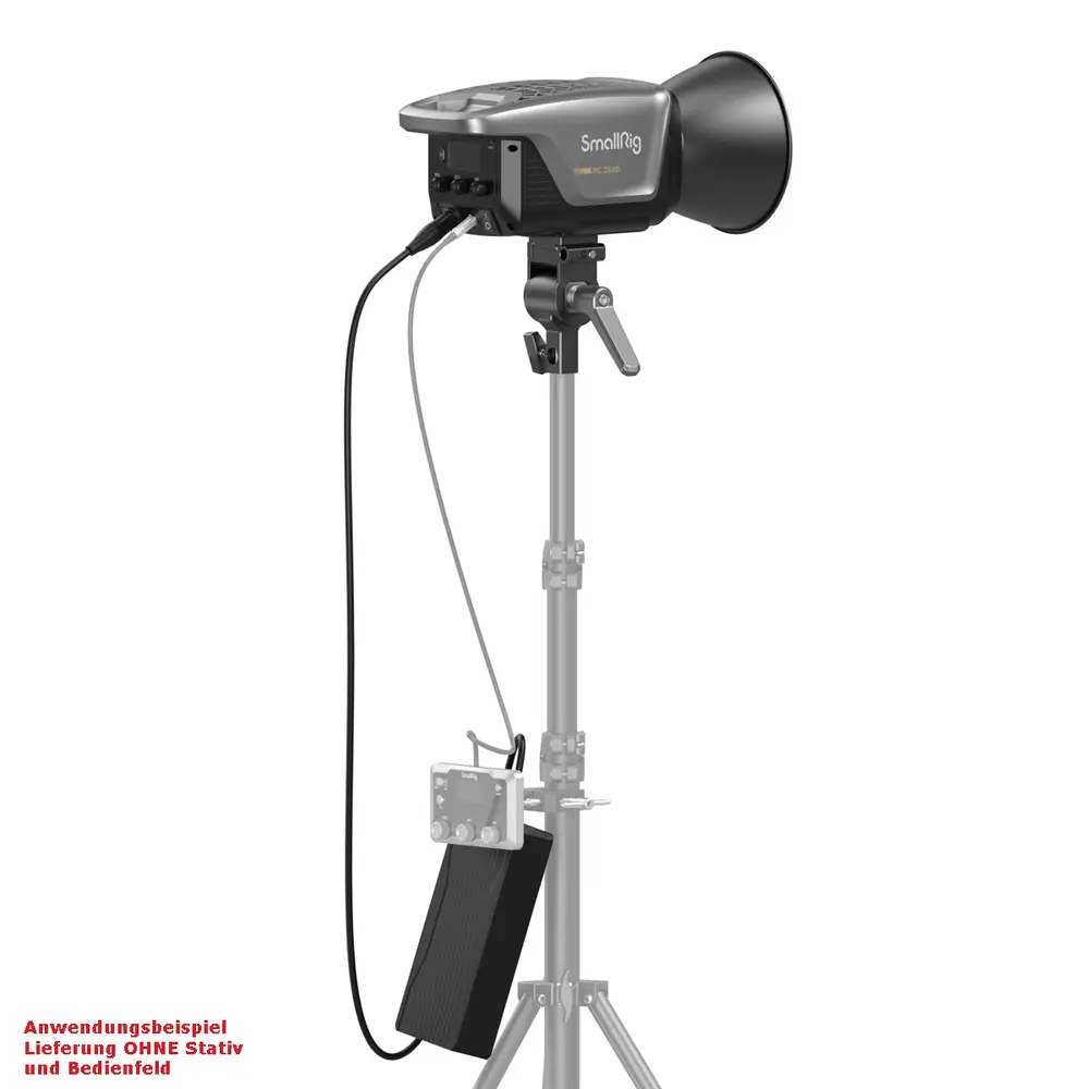 Sie verfügt über CRI 96+ und TLCI 97+ für eine genaue Farbwiedergabe und -reproduktion, die ihre Vorgänger übertrifft, einen GaN (Galliumnitrid)-Adapter, der eine Leistungseffizienz von mindestens 95% ermöglicht, sowie ein dämpfendes Kopfstützensystem zum Schutz der Leuchte. Dieses aus Metall und nicht brennbarem V-0-Material gefertigte Gerät ist 20% leichter und kann über den Schalter, die SmallGoGo-App oder das Bedienfeld (optional) gesteuert werden.