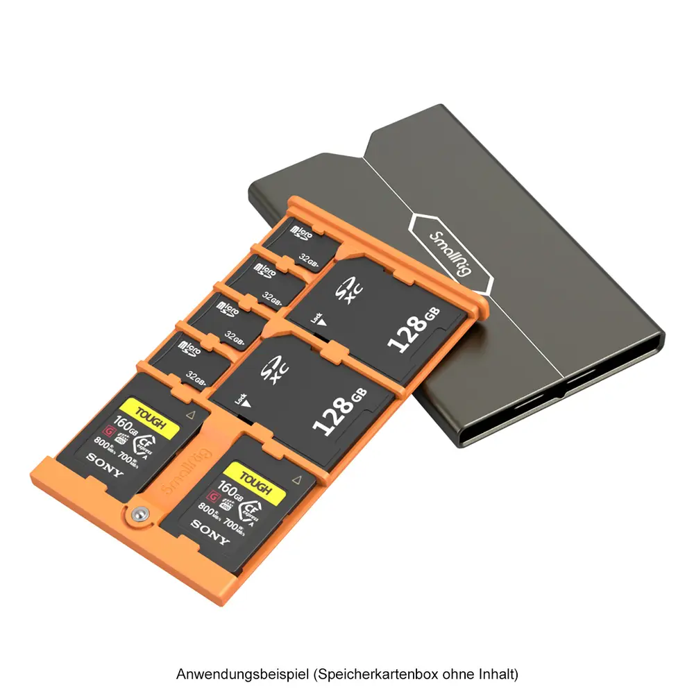 Das SmallRig Speicherkartenetui für Sony CFexpress Type-A 4107 ist ein Zusatzprodukt für Fotografie-Enthusiasten. Es kann zwei CFexpress Typ-A-Karten, zwei SD-Karten und vier Micro-SD-Karten aufnehmen, was für die Aufbewahrung der Speicherkarten von Kameras, Action-Kameras und Drohnen praktisch ist.