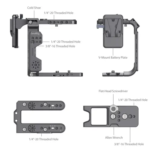 Lieferumfang:1 x Obere Platte1 x Seitenplatte1 x Grundplatte1 x V-Mount Batterieplatte1 x Netzkabel