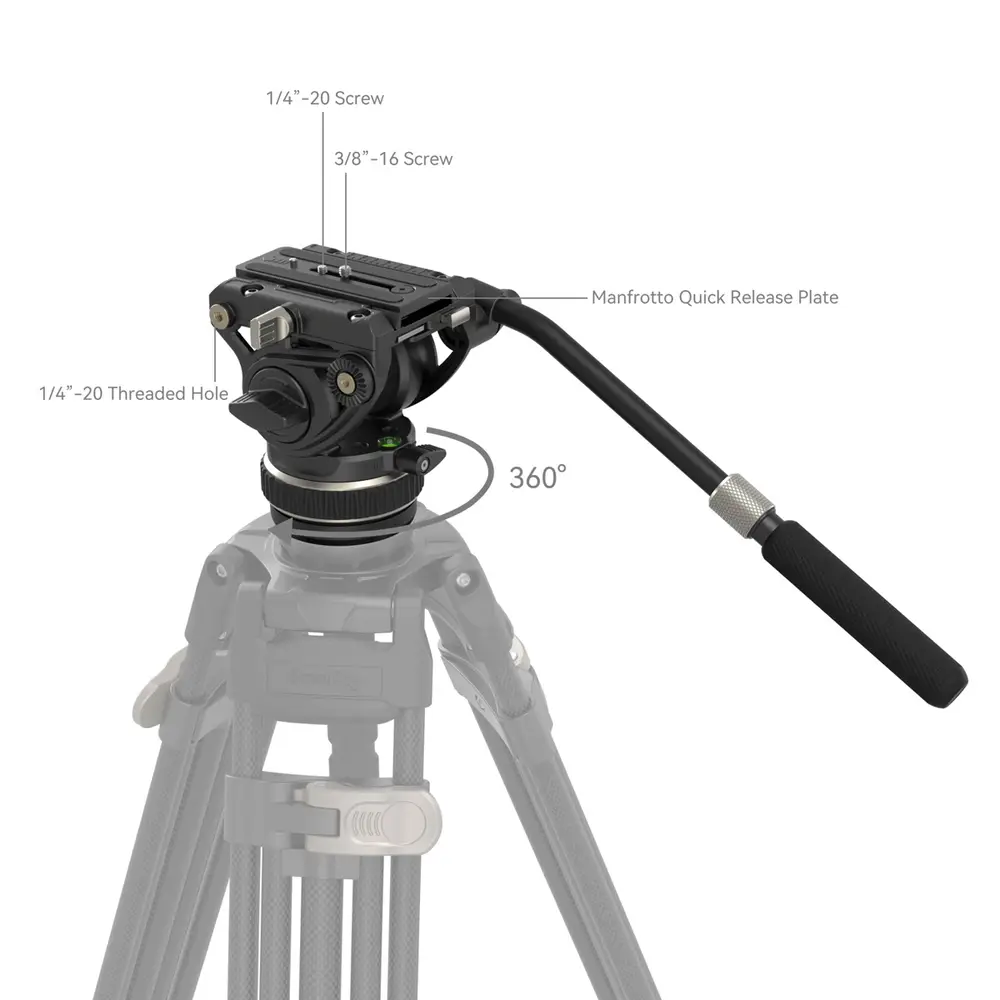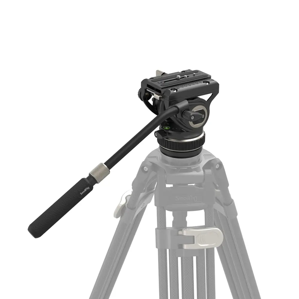 SmallRig Heavy-Duty Videokopf 4165 ist ein professioneller Fluidkopf, der Videoaufnahmen erleichtert. Der Videokopf ist mit einem einstellbaren, stufenlosen Dämpfungssystem ausgestattet, das ein gleichmäßiges Schwenken der Kamera bei einer Vielzahl von Geschwindigkeiten ermöglicht, die Sie wünschen. Bei einer Schwerpunkthöhe von 55 mm kann das Schwenk- und Neigeausgleichssystem die Kamera oder andere Rigs mit einem Gewicht von bis zu 8 kg präzise steuern und so für eine hervorragende dynamische Balance sorgen. Der Videokopf kann bis zu 10 kg tragen. Er verfügt über eine neu entwickelte Schnellwechselplatte, eine effizientere Montagelösung als herkömmliche Aufsteckhalterungen, die mit der DJI RS 2 / RS 3 / RS 3 Pro Schnellwechselplatte und der Manfrotto Schnellwechselplatte kompatibel ist, um ein einfaches Umschalten zwischen Stabilisator- und Stativaufnahmen zu ermöglichen. Der abnehmbare Teleskopgriff ermöglicht eine einfache Lagerung und Bedienung und ist sowohl für Links- als auch für Rechtshänder geeignet. Der Videokopf verfügt außerdem über eine 1/4"-20-Gewindebohrung zur Befestigung des Magic Arms und anderen Zubehörs sowie einen eingebauten Schraubenschlüssel, der das Anbringen und Lösen der Kamera erleichtert.