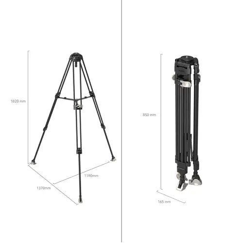 SmallRig FreeBlazer Heavy-Duty Stativ aus Kohlefaser 4167 ist ein Videostativ, das Videoaufnahmen erleichtert. Das Stativ verfügt über einstellbare Beine, die mit Hilfe eines Schnappverschlusses schnell ein- und ausgefahren werden können, mit einer Höhe von 79 cm bis 182 cm und einer zusammengeklappten Länge von 85 cm. Es verfügt über leichte und robuste Stativbeine aus Kohlefaser mit austauschbaren breiten Füßen und Spikefüßen, je nach Terrain, und eine maßgeschneiderte Aufbewahrungstasche für bessere Lagerung, Schutz und Transport.