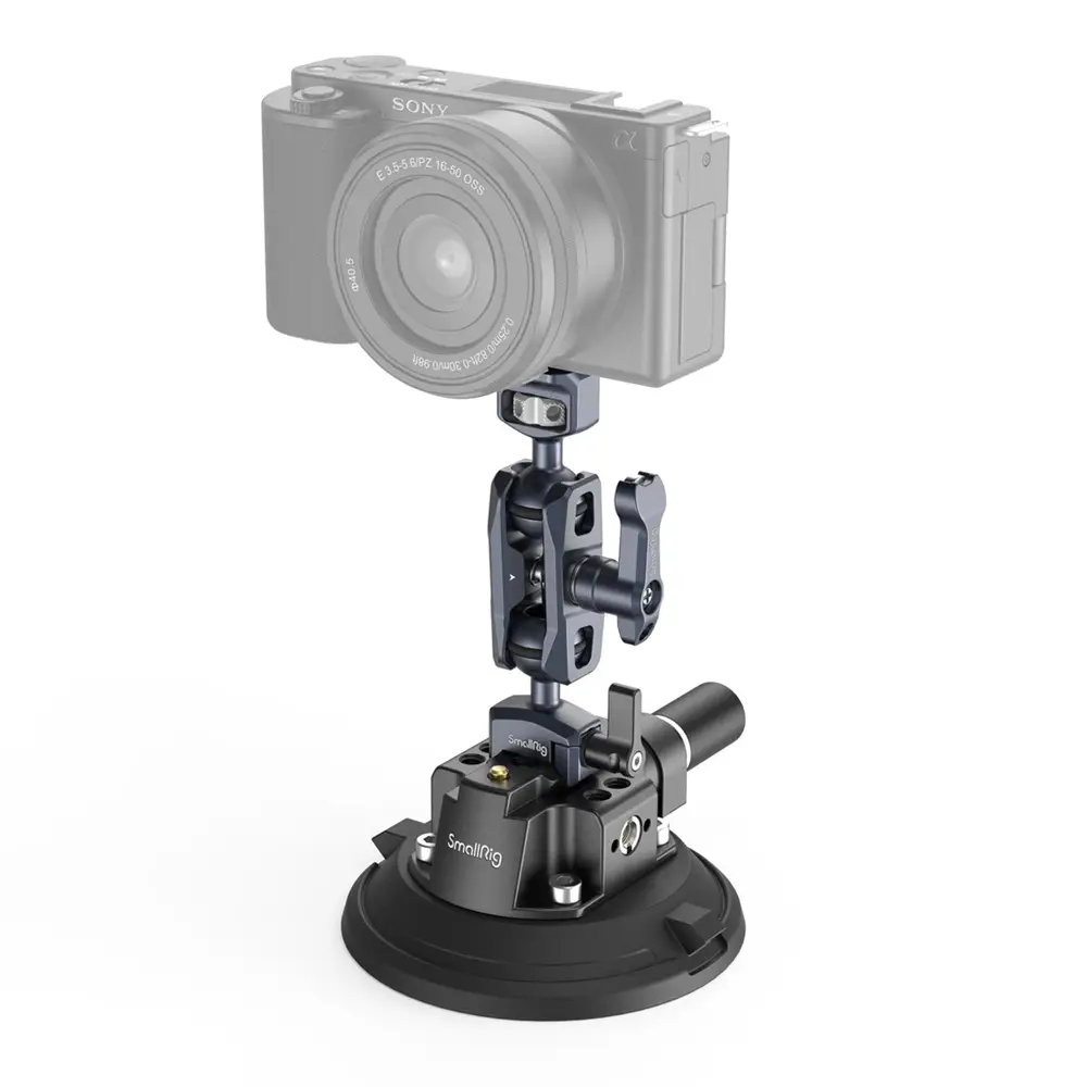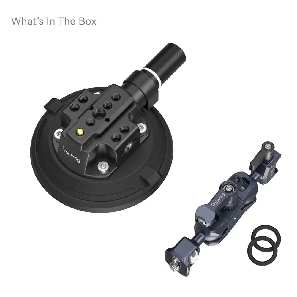 Das SmallRig 4" Saugnapf-Kamerahalterungsset für Fahrzeugaufnahmen 4236B besteht aus einem 4" Saugnapf, einem magischen Arm und einer Staubschutzhülle. Insbesondere der robuste und verschleißfeste Sauger, der größtenteils aus NBR besteht, kann bei -20°C bis 60°C arbeiten.