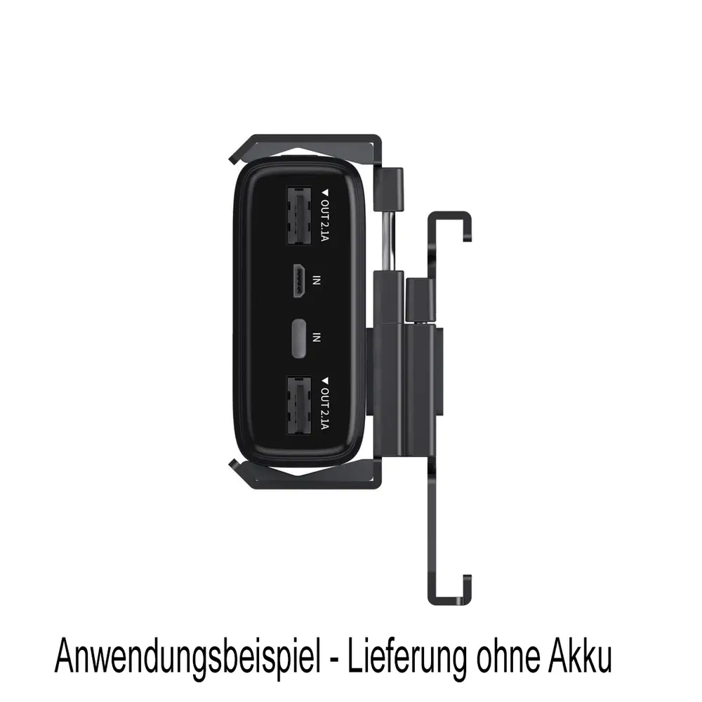Der Clip hält eine PD-Powerbank auf der Rückseite der "SmallRig RC 60B Bi-Color LED-Videoleuchte", um die Videoleuchte mit Strom zu versorgen.