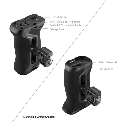 Der SmallRig-Seitengriff (4346) mit 2-in-1 Befestigungsschraube wurde entwickelt, um die Kamerabewegung zu erleichtern und beidhändige Aufnahmen zu stabilisieren, während gleichzeitig grundlegende Befestigungspunkte bereitgestellt werden. Die Schnittstelle verfügt über ein verstellbares Design und eine hohe Vielseitigkeit. Kompatibel mit Cages, Platten usw. oder mit 1/4"-20 Aufnahmelöchern und ARRI 3/8"-16 Aufnahmelöchern.