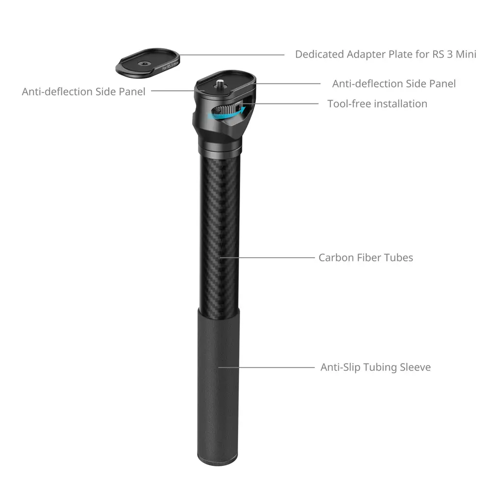 Der SmallRig Verlängerungsarm 4378 für DJI Stabilisatoren wurde speziell für DJI RS 4 / RS 4 Pro / RS 3 / RS 3 Pro / RS 3 mini / RS 2 Stabilisatoren entwickelt. Er ist aus leichter Kohlefaser gefertigt und bietet eine höhere Tragfähigkeit bei geringerem Gewicht. Ausgestattet mit einer 1/4-20"-Schraube an der Oberseite für eine einfache Installation auf der DJI-Stabilisatorbasis, verfügt die Verlängerungsstange über Anti-Durchbiegungs-Leitbleche für verbesserte Stabilität und eine Anti-Rutsch-Polsterung für besseren Halt. Bei Aufnahmen aus einem niedrigen Winkel entlastet die Stange die Taille des Fotografen und ermöglicht einzigartige Perspektiven, wie z. B. Aufnahmen durch Autofenster oder aus erhöhten Blickwinkeln. Die Unterseite der Verlängerungsstange ist mit einer 1/4-20"-Gewindebohrung zur Befestigung an einem Stativ (ID 4117) ausgestattet.