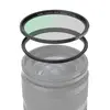 Hinweis: Obwohl die Filterkonstruktion das Auftreten von Vignettierungen in Fotos deutlich reduziert, kann sie nicht garantieren, dass die Vignettierung unter allen Aufnahmebedingungen und Kameraeinstellungen vollständig beseitigt wird.