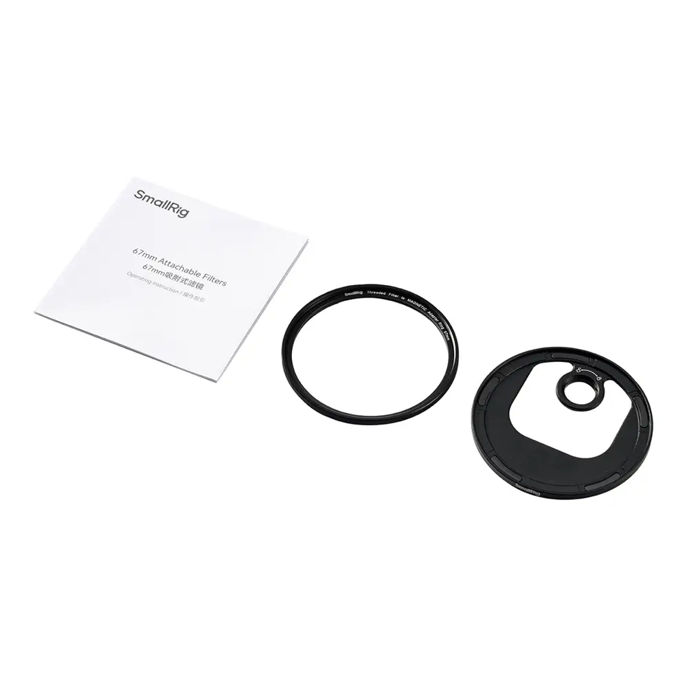 Es ist möglich, einen magnetischen 67mm-Filter an SmallRigs mobilem Videocage oder an der mit einem T-Mount ausgestatteten Objektivrückwand anzubringen. Benutzer können Filter schnell und effizient durch die Magnethalterung installieren oder austauschen.