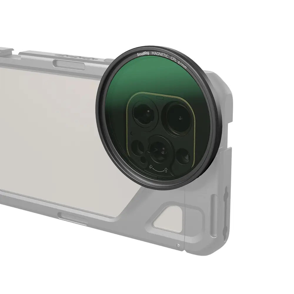 Das magnetische Befestigungssystem ermöglicht dem Benutzer ein schnelles und effizientes Anbringen und Austauschen der Filter. Das Set enthält einen M-Mount-Adapterring für die direkte Integration mit der M-Mount-Rückwandplatine von iPhone-Cages.